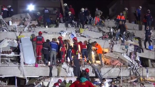 A strong earthquake in the aegean sea has rattled greece and areas of western turkey killing more than two dozen people. Turkeys disaster and emergency management presidency said fridays earthquake was centred in the aegean at a depth of 165 kilometres 103 miles and registered at a 66 magnitude. Drone footage captured buildings reduced to piles of rubble in the turkish city of izmir on friday after a strong earthquake struck the aegean sea setting off tidal waves which slammed into.