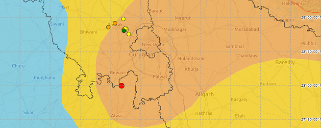 Earthquake in delhi today. A low intensity earthquake of magnitude 21 hit the national capital on monday the national centre for seismology said. An earthquake of magnitude 35 hit delhi on sunday the third in less than a month according to the national center for seismology.