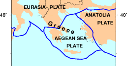 At this region most interactions between the tectonic plates occur and hence cause more earthquakes. The aegean sea plate is currently moving at approximately 30mm in a southwestern motion against the eurasia plate and this action causes seismic activity in both northern and central greece. Friction between the plates must be overcome before they move.