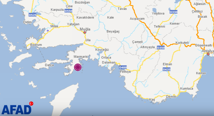 Exact location of event depth 6884 km 2821410 east 3672920 north. It was as usual accompanied by smaller tremors. A magnitude 55 earthquake was reported 13 km s of marmaris turkey according to the us.