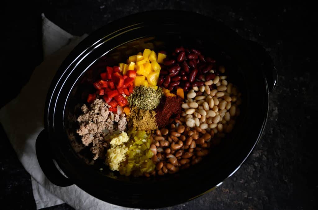Its got a good bit of bite and a whole heap of flavor. To the slow cooker add tomatoes black beans kidney beans chicken broth chili powder cumin and oregano. Prepare the chili in the slow cooker for a convenient all day option or on the stovetop for a quick last minute meal.